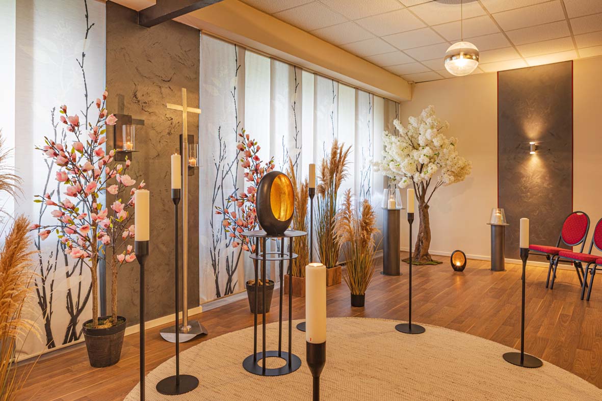 An unseren Standorten bieten wir Ihnen helle und freundliche Räumlichkeiten, in denen wir das letzte Lebensfest gemeinsam mit Ihnen gestalten. Hier haben wir Ihnen ein paar Impressionen zusammengestellt.